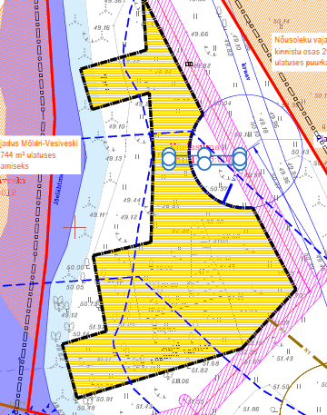 Tegelikult on skeemil näidatud ka 10 m veekaitsevöönd ja 50 m laiune ehituskeeluvöönd, kuid ehitusala kavandamisel ja ehitusõiguse taotlemisel nendest tulenevate keeldudega ei ole arvestatud. Looduskaitse seaduse § 38 kohaselt on kalda ehituskeeluvööndis uute hoonete ja rajatiste ehitamine keelatud.